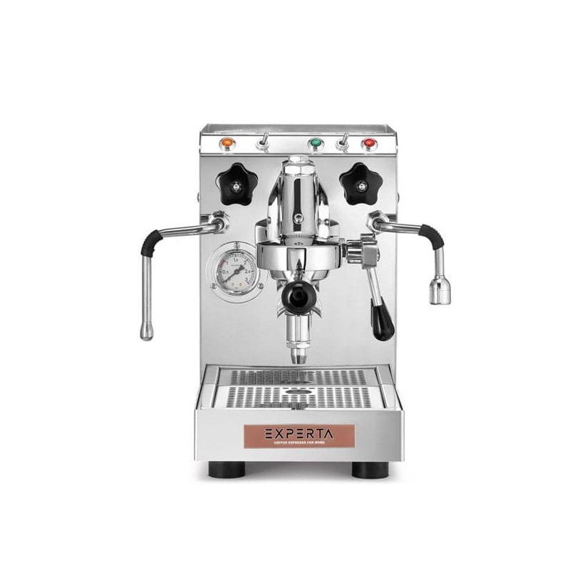 OpisFresco Experta to seria kompaktowych ekspresów kolbowych, mimo niewielkich wymiarów to w pełni profesjonalne urządzenia polecane szczególnie do małej gastronomii czy użytku domowego. Ekspres Experta Pro posiada 1 grupę i jest modelem półautomatycznym, obsługuje się go ręcznie za pomocą dźwigni. Wykonany został w całości ze stali nierdzewnej, wyposażony w miedziany bojler wewnętrzny o pojemności 1,3 l zapewnia ciągłą cyrkulację ciepłej wody, posiada również wewnętrzny zbiornik na wodę o pojemności 3l.